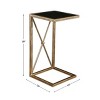 The Uttermost Zafina Gold Accent Table blends elegance and function in a sleek, compact form. Crafted from lightly antiqued gold iron, this pull-up style table features a rich black tempered glass top, creating a timeless black-and-gold palette that complements both modern and classic interiors. Its slender 25-inch height and 13-inch width/depth make it ideal for use beside sofas, armchairs, or beds. Whether used for drinks, decor, or everyday essentials, Zafina delivers standout style in any setting with minimal footprint and maximum impact.