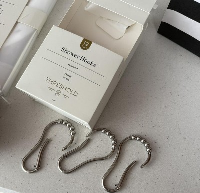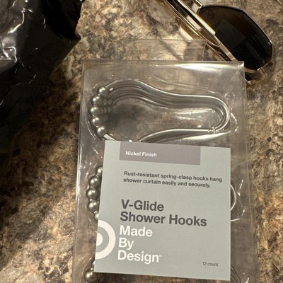 V Hook Shower Curtain Rings Brushed Nickel - Threshold™: Zinc Alloy, Nickel-Plated, 12-Pack