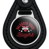 - DURABLE LEATHER KEYCHAIN: Give your keys some street cred with our leather keychain with durable resin-topped emblem. Pocket-sized for convenience, this keychain easily stows away in purse, pocketbook, or evening bag. The easy-to-spot image makes it perfect for keeping track of that special set of keys.