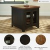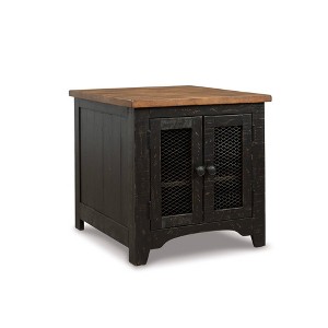 To those with an eye for the best in rustic farmhouse living, the two-tone Valebeck end table doubles up on charm. Designer touches include plank-effect styling, distress marks and wire mesh door fronts for added character. Made with Pine solids and veneers. Tops are finished in a light brown color and the bases finished in a rustic vintage black. Signature Design by Ashley is a registered trademark of Ashley Furniture Industries, Inc.