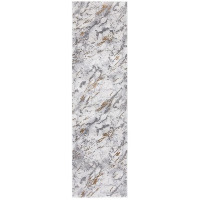 Enhance your space with this elegant runner area rug, measuring 2 feet 3 inches by 8 feet. Crafted with precision in Turkey, it features a sophisticated Oriental pattern that blends grey and gold tones. Designed in a traditional style, this rug adds a touch of timeless charm to any hallway or entryway. The low profile height of only 1/4 inch ensures easy placement under doors and furniture. Made with durable polyester, it is power loomed for a consistent weave and finish. This stylish runner is perfect for adding a layer of comfort and warmth to your home while showcasing an exquisite design.