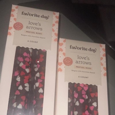 The Christmas version of these rods are amazing. I wish these were the same but the candy hearts, while cute, are not functional. They are hard and flavorless and actually detract from the pretzels. I would love a Valentine’s Day version with a red or pink drizzle or maybe just put hearts on the packaging. 5 stars for the rods without the hearts, 2 stars for the rods with the hearts.