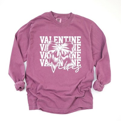 Product Name: Valentine Goose Coquette - Women's Garment Dyed Long Sleeve Graphic T-Shirt