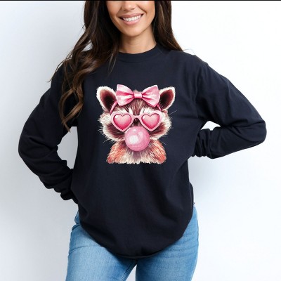 Product Name: Valentine Raccoon With Bubblegum - Women's Garment Dyed Graphic T-Shirt