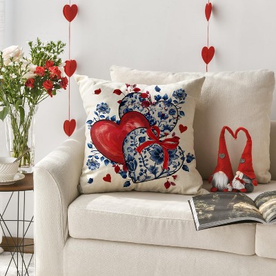 Valentine's Day Pillow Cover 18X18 Inch Set of 2,White Hearts Decorations Holiday Farmhouse Decorative Pillow Case for Sofa Couch Decor (Red)