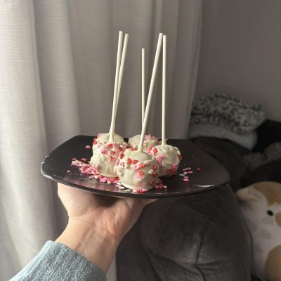 I loved how tasty these are. I’m not a big sugar girl but they didn’t taste overly fake and or gross. When you dip the chocolate I had the cake pop in one hand and a spoon in another so I could coat it quickly. It is pricy but I’m not sure why everyone is so negative. I also cut the sticks in half as they are far too long. It did make about 10 per box not the 12. You could make 12 but they would be tiny tiny.