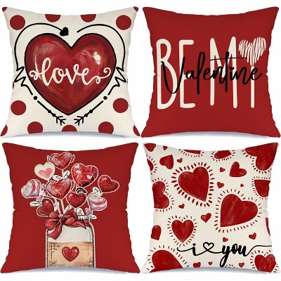 Valentines Day Throw Pillow Covers 18x18 Set of 4 Red Love Heart Home Decorations Cushion Case for Sofa Couch Velvet