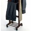 Prior to getting the Walnut Valet Stand, my husband would through his pants, shirts, wallet and keys everywhere. He could never find his keys or wallet, when he needed them. My daughter and I got him the Walnut Valet Stand for Christmas. The only down side is that it is difficult to assemble and the rolling legs are really difficult to get into place. My husband had to help us finish his gift, after he opened it. Now, he uses it every day and his clothing, keys and wallet are neatly placed on the Valet Stand, every night.
