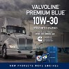 Whether you’re driving across town or hauling loads across the country, Valvoline Premium Blue One Solution Gen2 Synthetic Blend Engine Oil helps maximize every mile. From big rig on-highway vehicles to off-highway agriculture equipment, Premium Blue One Solution Gen2 extends drain intervals to reduce oil changes and downtime with a unique 5,000 miles oil drain extension in Cummins X15/X12 engines when average is 7mpg or higher. The multi-fuel engine oil for heavy duty diesel, gasoline and natural gas engines saves time and lowers maintenance costs over the life of your vehicles. In addition to reducing service intervals, it also reduces inventory by eliminating the need for multiple engine oils. This synthetic blend formula offers enhanced viscosity and oxidation stability along with critical component protection in extreme operating conditions, whether it's severe idle time or high hour/high mileage accumulation. Valvoline Premium Blue One Solution Gen2 Synthetic Blend 10W-30 is engineered to control wear, deposits, and oil breakdown, while meeting low emission requirements. Stay on the road longer, increase productivity and reduce the total cost of ownership. Valvoline Premium Blue is The Only One exclusively endorsed and recommended by Cummins. And is recommended for use in Cummins, Volvo, Mack, Ford, Caterpillar, Detroit Diesel, Dodge Ram, Ford, Chevrolet and more.