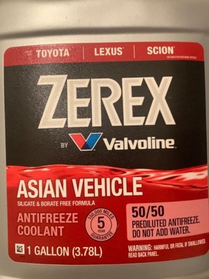 Zerex from Valvoline is the #1 selling OEM-approved coolant brand. Zerex Asian Vehicle Red Antifreeze/Coolant is proven to maximize engine life in vehicles made by Asian auto manufacturers such as Toyota, Lexus and Scion which specify a red formula that’s silicate and borate-free with Hybrid Organic Acid Technology (HOAT). Specially formulated with a phosphate additive, Zerex is made for your car and protects better than industry standards against corrosion, leaking, deposits as well as freezing and boiling – the four main causes of cooling system failure, which is the leading cause of engine breakdown. Our HOAT formula includes a special phosphate additive that protects from corrosion, scale and rust, so radiators, water pumps and other metal cooling system parts (including aluminum) stay clean and your antifreeze flows and functions properly. Zerex Asian Vehicle Red Antifreeze/Coolant contains no silicates, borates, 2-EHA, amines or nitrites. So whether you’re topping off your radiator or doing a complete system flush, trust Zerex Asian Vehicle Red Antifreeze/Coolant. Made for your car. Made by Valvoline.