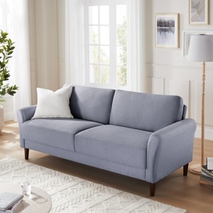Bring a touch of mid-century elegance to your space with this upholstered couch. Designed with clean lines, gently rolled arms, and a minimalist silhouette, it adds a refined yet approachable feel to any living room, den, or office lounge.