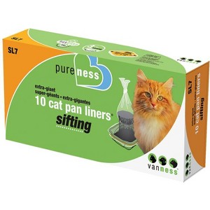 Van Ness PureNess Extra Giant Sifting Cat Pan Liners make it easy to keep your cat's litter clean and your home odor-free. Made from no-tear technology, these liners automatically sift out unused litter when lifted, so you only throw away the waste!Liners automatically sift out unused litter when liftedSaves time and money while keeping litter pan ready for useDurable 3-ply, no-tear technologySifting unused litter out lets you dispose of waste without sacrificing litter that's still perfectly fine for use, resulting in more efficient litter usage and less money spent on new litter.