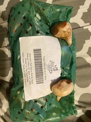 [This review was collected as part of a promotion.] I got these a week ago, and they are very nice bulbs, you get about a dozen bulbs that are packed in a container that prevents damage. they were very easy to plant and I look forward to beautiful flowers soon.