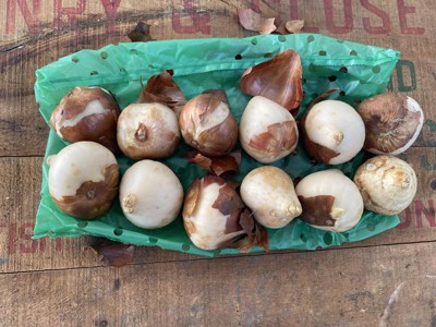 [This review was collected as part of a promotion.] There were 12 bulbs in my order and when they arrived only 1 was shriveled and moldy. I planted all the bulbs as they were large in size and very healthy looking. Looking forward to next Spring when they emerge from the ground.