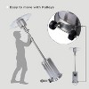 Constructed of stainless steel, this heavy-duty unit features wheels for easy mobility.