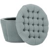 Introducing the Vanessa Ottoman in sky blue, a beautiful addition to any living space. With its soothing sky blue shade, it brings a touch of tranquility to your room. The ottoman is crafted from sturdy plywood, ensuring a solid foundation. The fabric blend is composed of 47 percent polyester, 28 percent cotton, and 25 percent linen, combining comfort and style seamlessly.