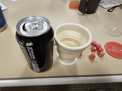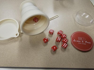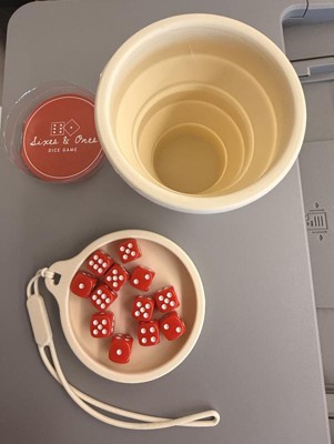 This Vango Sixes and Ones Dice Game is adorable. It comes in a soft silicone cup that collapses. This makes it perfect to toss in a bag for travel! The set includes dice and instructions for six different games, not just the main "Sixes and Ones." We mostly played the main game, and it was quick to learn and a lot of fun. It's a fast game of chance, where you pass or lose dice based on what you roll. The best part is how portable it is. The silicone cup works perfectly as a dice shaker, too! The dice are small but easy to read. I highly recommend this game. It is a simple, fun way to play games together on the go.