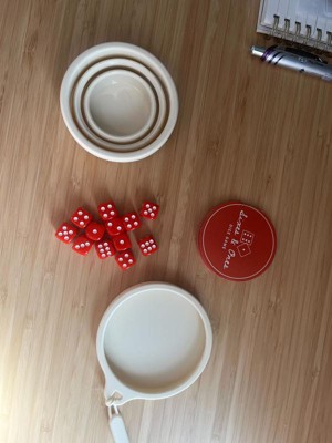 This is a great compact game set that is easy to carry with you so you always have a game to play. Collapsing dice cup with dice and directions for six games. “I received these products for free from the Hey, Bullseye™ sampling program in exchange for my honest review.”