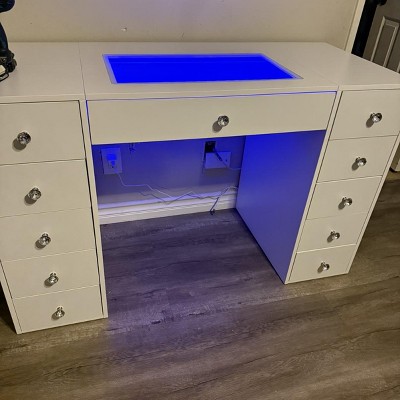Absolutely love this VANITII Makeup Vanity Desk The built in lights are bright and perfect for makeup, and the 11 drawers give so much storage everything finally has its place. It’s sleek, sturdy, and makes my space feel organized and beautiful. My 16 years old daughter built it and I helped her it was easy to build.