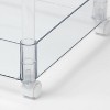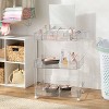 Organize and store your makeup items easily with this Vanity Cart from Brightroom™. Designed in a clear hue, this vanity cart features three shelves — a top shelf with multiple compartments, a mirror, and two lower shelves — for storing various makeup and everyday-use items. Plus, this vanity cart has four castor wheels that provide easy portability from one room to another.