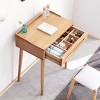 This 23.62-inch solid wood vanity table features a drawer with multiple compartments, making it ideal for organizing accessories, cosmetics, and daily essentials. Crafted from durable oak wood with a smooth natural finish, the table offers a compact design that fits easily in bedrooms, entryways, or small spaces. Its rectangular top provides ample surface area, while the tapered legs enhance stability and style. The built-in drawer includes fixed partitions for neat storage. Designed for adult use, this table combines function and minimalist elegance. Dimensions: 23.62in W x 15.75in D x 30.71in H.