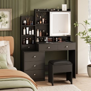 This makeup vanity features a charging station, includes 2 standard plug sockets and 2 USB ports, which can be more convenient to connect your hair dryer, curling iron, and it can also charge your phone, tablet, or other mobile devices. Nice makeup vanity for dressing room, salon, or Bedroom.