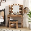 - Made of high quality materials, it has a strong load-bearing capacity,and stability, and a smooth finish that is easy to clean. Added a hairdryer holder for easy access and use.This vanity desk with mirror and lights is simple, elegant, and stylish which can perfectly match your other furniture and add magic and fashion charm to your room.