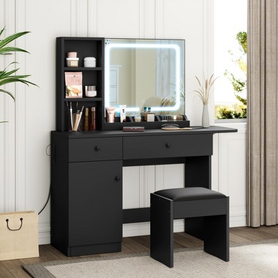 Vanity Desk with Mirror and Lights, Makeup Vanity Desk with Sliding LED Lighted Mirror, Power Outlet