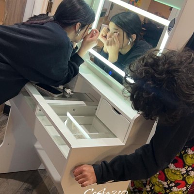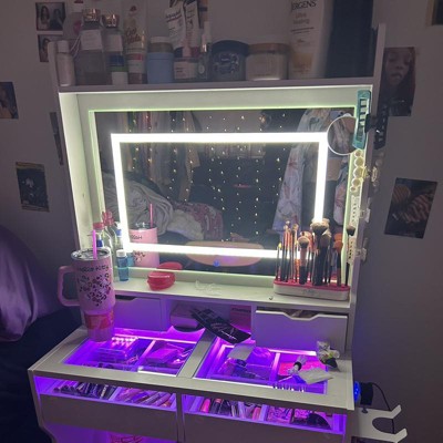 Vanity Desk with Mirror and Lights, Small Makeup Vanity Desk with 4 Drawers