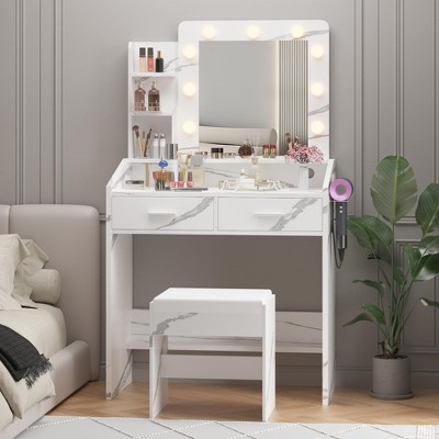 Vanity Desk with Mirror and Lights - Vanity with 3 Lighting Options, Adjustable Brightness, Vanity Set with 5 Sliding Drawers, Shelves and Vanity