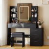 - Spacious & Organized Vanity – Everything in Its Place. This lighted makeup vanity combines 6 spacious drawers & 2 open side shelves, offering generous storage for cosmetics, skincare, and accessories.