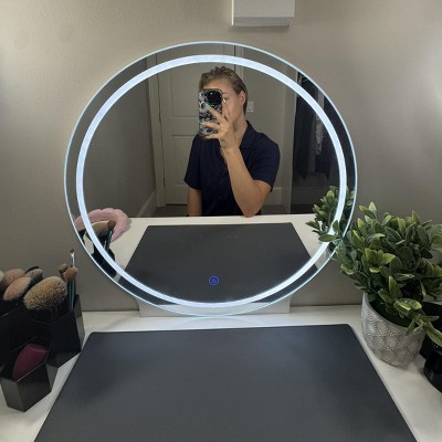- 3-Color LED Light - The vanity desk has a smart LED mirror, 3 color modes(warm yellow/warm white/cold white), and adjustable brightness to meet all your scene needs, perfect for home, salon, or live broadcast.