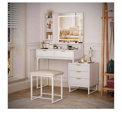 【 Durable Material Easy Installation 】Makeup Vanity with a faux leather vanity stool has a good carrying capacity. It uses a strong metal bracket, and long service life, environmentally friendly particle board. Package step-by-step instructions, all parts and accessories are marked quick and convenient installation!