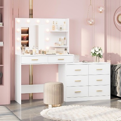 Costway Vanity Makeup Table Touch Screen 3 Lighting Modes Dressing Table Stool Set White\Black\ Gray