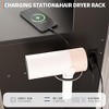 - Neatly Arranged Vanity Table: Effortlessly organize your beauty items with this roomy makeup table, equipped with two drawers, a hair dryer holder, and open shelves for quick access to skincare and accessories.