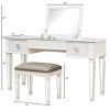 Included in the set is a padded stool with a soft, skin-friendly faux leather cushion, offering a comfortable seat whether you're getting ready or working. The stool tucks neatly under the table to save space when not in use. With its elegant lines, multi-functional design, and quality materials, this vanity table is a stylish and practical upgrade to any bedroom or makeup room.