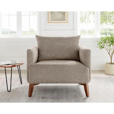 Bring modern comfort and cozy charm to your home with this 34.1" upholstered accent chair. Featuring a gently curved barrel silhouette and sleek armrest design, this barrel chair blends style and function with ease. Upholstered in soft, breathable polyester fabric and supported by sturdy wood legs, it offers a supportive seat that’s just right for reading, relaxing, or catching up with friends.