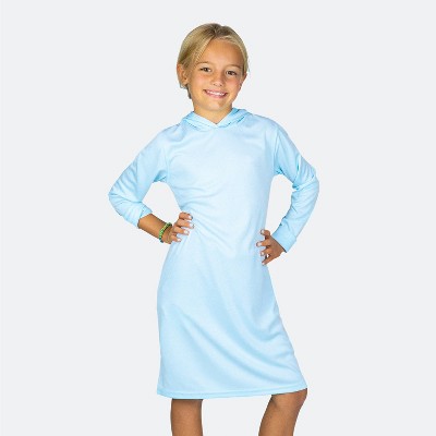 The Toddler Solar Hooded Dress is super soft and perfect for trips to the beach, pool, and park. Lightweight, quick-drying fabric moves with kids as they run, jump, and twirl. Plus, it has built-in UPF 50+ sun protection so you can worry less about reapplying sunscreen. This 100% technical polyester feels super soft on your skin and moves with you but won't cling or stretch out. Sun, sweat, and salt water: meet your match. The garment color won't fade from exposure to the elements. Provides SolarBloc® UPF 50+ sun protection on covered areas, plus PURE-tech® cool-wicking and M-Shield® permanent odor control. The fabric is also quick-drying and durable. Machine washable.