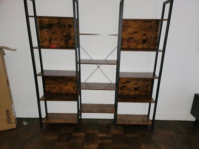 VASAGLE 5-Tier Bookcase with 14 Shelves, Book Shelf with Metal Frame, Bookshelf for Living Room, Home Office, Industrial Style, Rustic Brown and Black