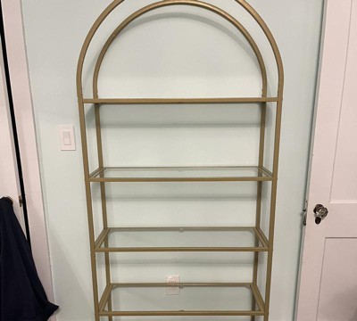 - [A Worthy Stage] Your treasures should be shown off on a rack that's worthy of them, just like this storage shelf; with its chic, arch-shaped design and transparent glass shelves surrounded by gold-coloured steel, it’ll highlight everything you value