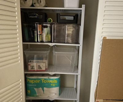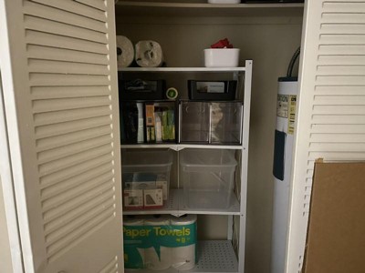 This was the easiest setup of shelving I’ve ever done! I did have to tighten the screw at the back of the shelf but otherwise, the setup literally took seconds! I’m using the shelf in a decent sized closet to maximize organizing my stuff.