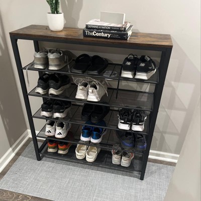 VASAGLE 6-Tier Shoe Rack, Shoe Organizer for Closet, 24-30 Pairs of Shoes, 11.8 x 39.4 x 43.3 Inches, Rustic Brown and Black