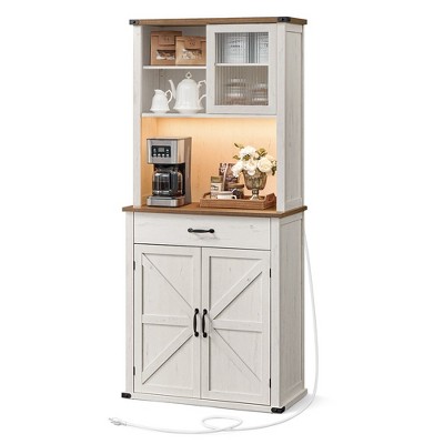 VASAGLE 71" Pantry Cabinet with Lights and Charging Station, Kitchen Pantry Cabinet,Farmhouse Storage Cabinet