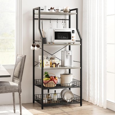 VASAGLE Baker's Rack Microwave Oven Stand Kitchen Tall Utility Storage Shelf 6 Hooks and Metal Frame