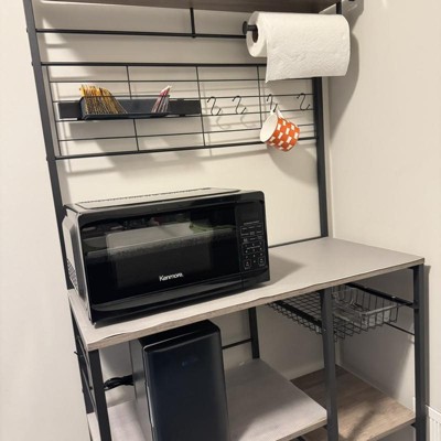 VASAGLE Bakers Rack with Magnetic Knife Holder, Paper Holder, Wire Basket, 8 Hooks, Organizers and Storage, Baker's Rack with Wire Basket