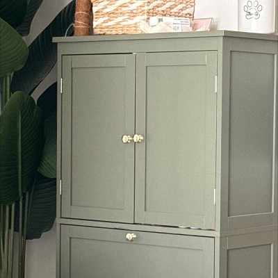 Specifications: Color: Forest Green Material: MDF (Medium Density Fiberboard) Product Size: 11.8"D x 23.6"W x 43.3"H (30 x 60 x 110 cm) Product Weight: 40.8 lb (18.5 kg) Max. Static Load Capacity of the Top: 300 lb (136 kg) Package Contents: 1 x Cabinet 1 x Accessory Bag 1 x Anti-Tip Kit 1 x Instructions VASAGLE Notes: Please secure the cabinet to the wall with the included anti-tip kit for added stability and safety. Place this Cabinet in an area where it will not be frequently splashed with water to prevent cracking or warping.