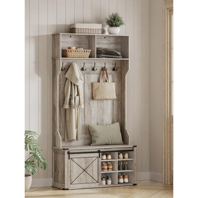VASAGLE Hall Tree with Bench and Shoe Storage, Coat Rack with Shoe Bench, Entryway Furniture, 16 Open Compartments, 6 Tri-Hooks