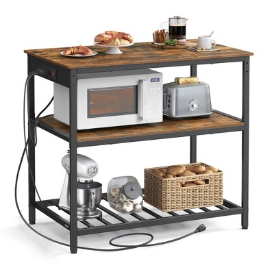 VASAGLE 3 Tier Kitchen Island, 39.4 Inches Kitchen Shelf with Large Worktop, Industrial, Rustic Brown and Black