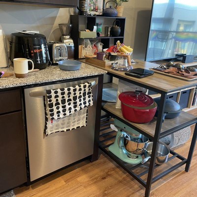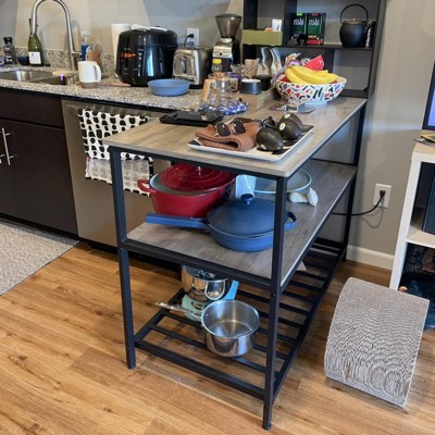 - [3-Tier Storage] Place a flower vase or a tea set on the top, kitchen appliances on the middle shelf, and storage boxes with bakeware on the lower grid shelf—everything is nicely organized on this 3-tier Island table with easy access