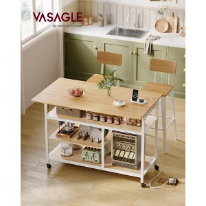 VASAGLE Kitchen Island with Drop Leaf, Kitchen Workbench with Extendable Worktop, Kitchen Cart, Adjustable Shelf